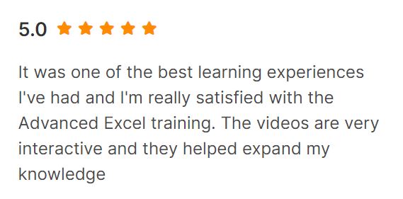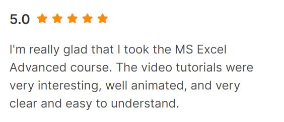 Very Informative Course with Lots of Resources & Hands on Sessions. Done a remarkable job in condensing a very exhaustive course into a one which contains only the relevant information which are required to master the Data Analysis in Excel.